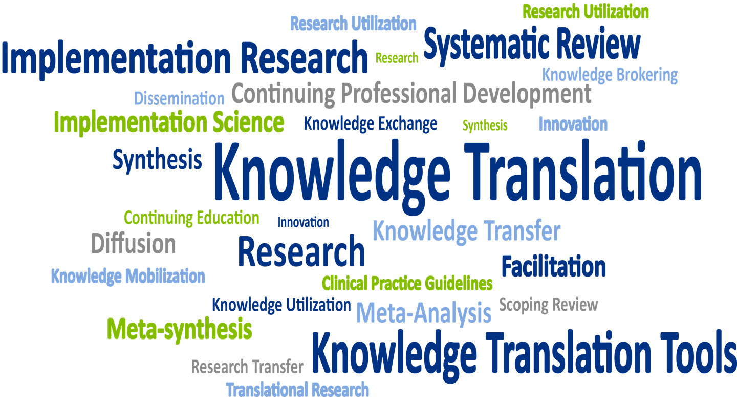 Knowledge translation (KT) is a process to expedite the use of evidence in clinical practice and includes the generation of new knowledge and the clinical implementation of established evidence.